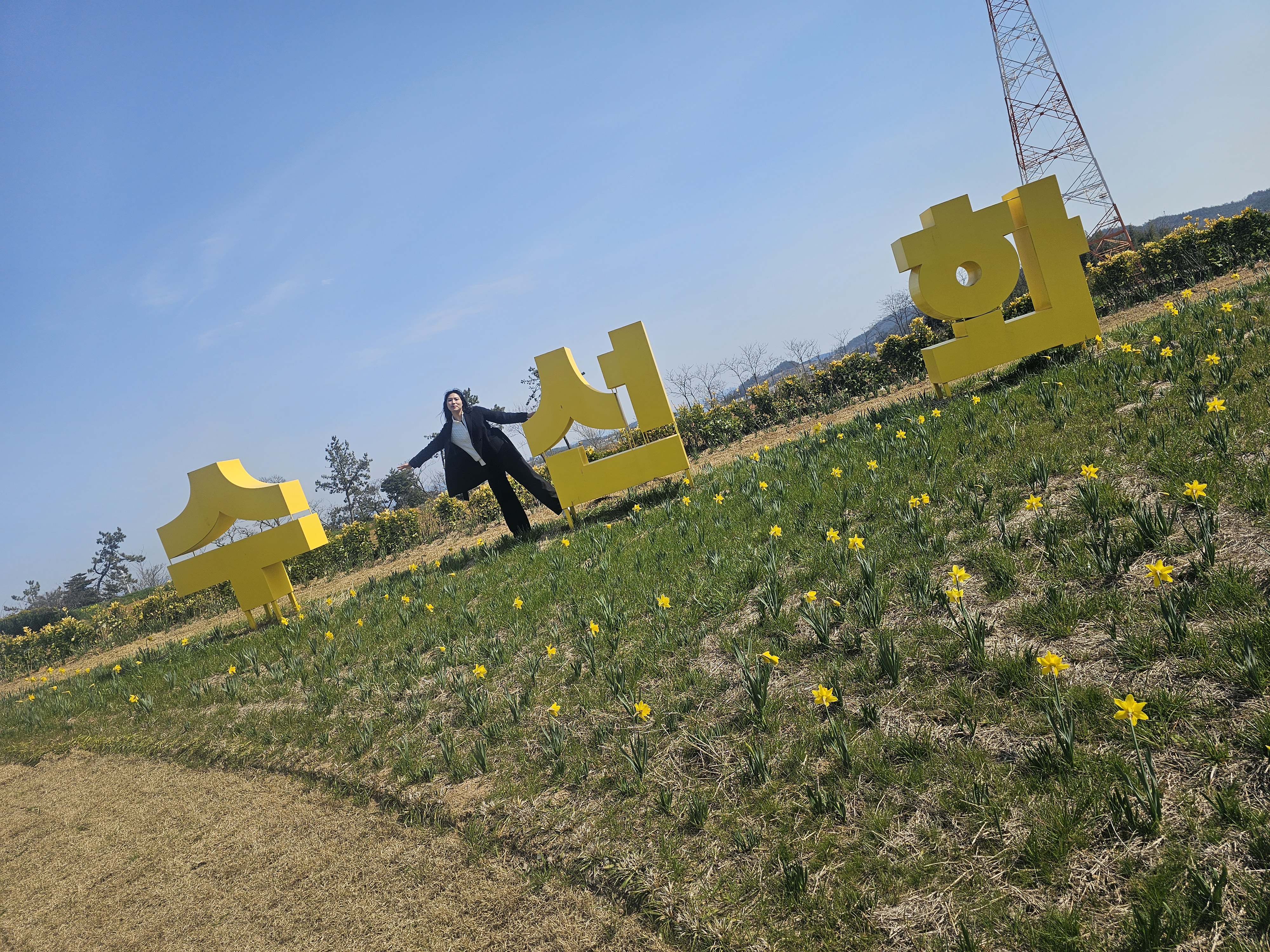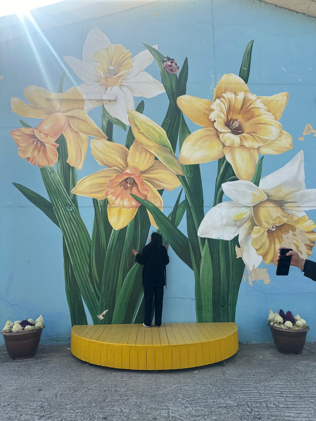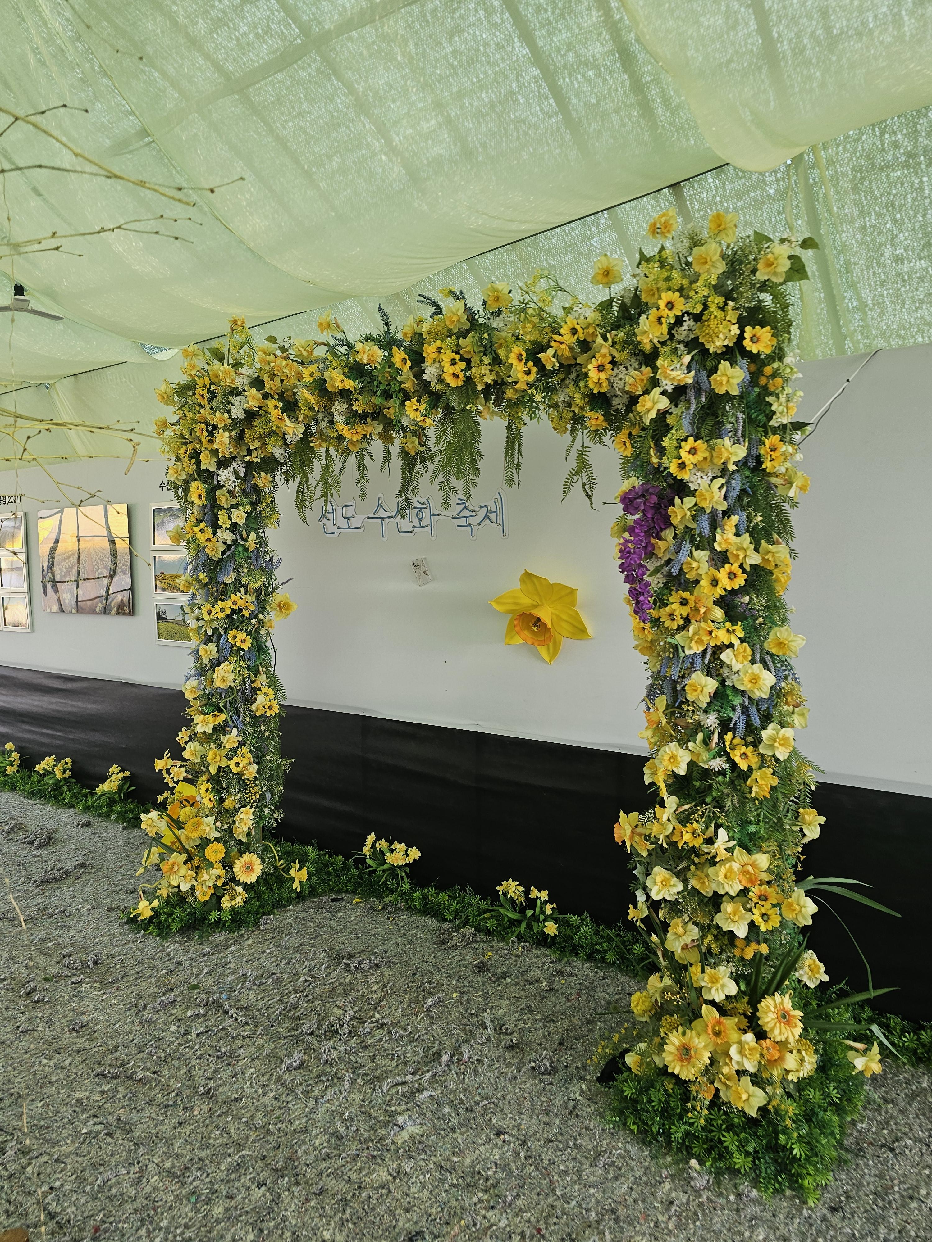 수선화꽃다발 안에 들어가서 찍을 수 있습니다.