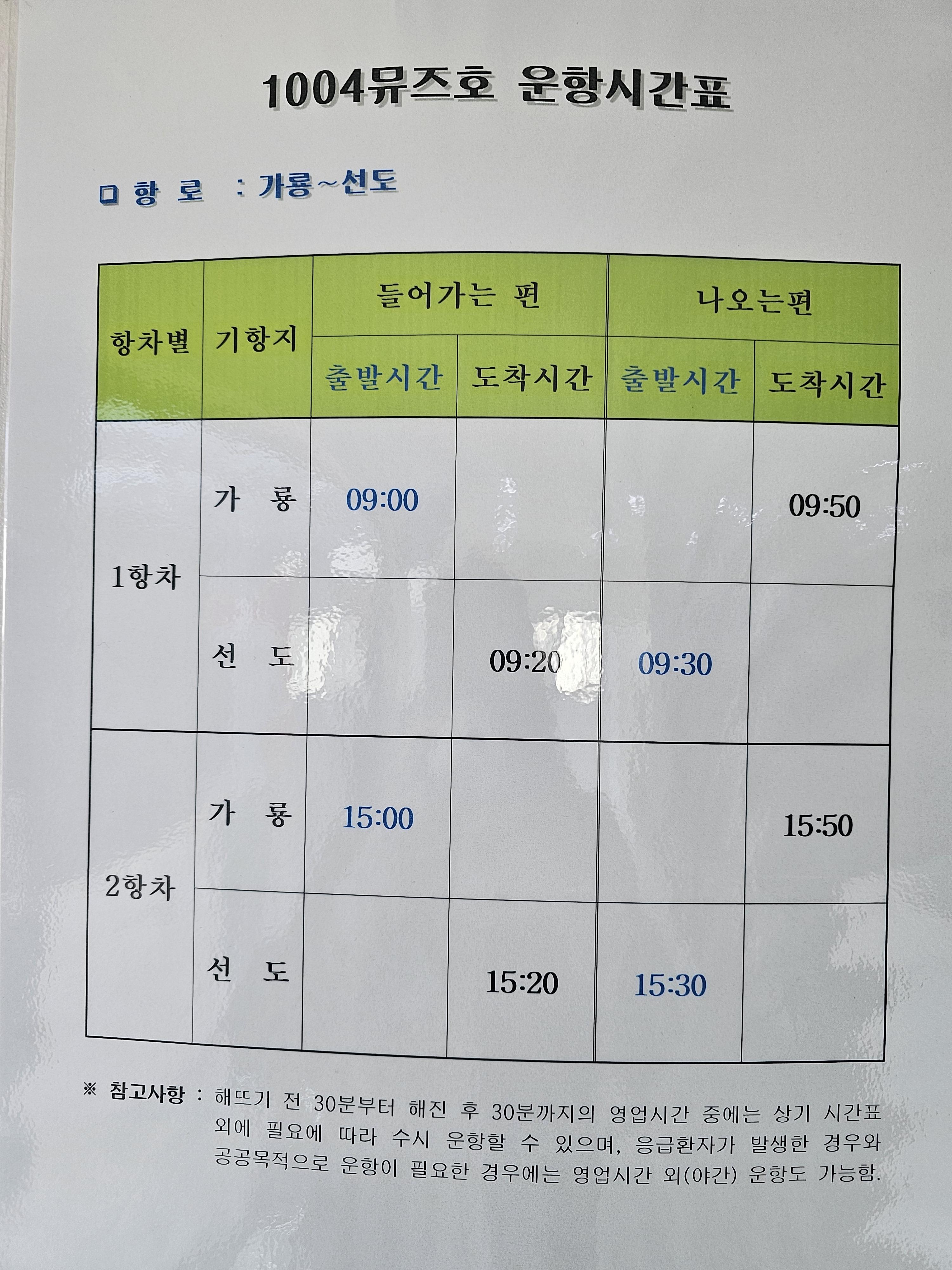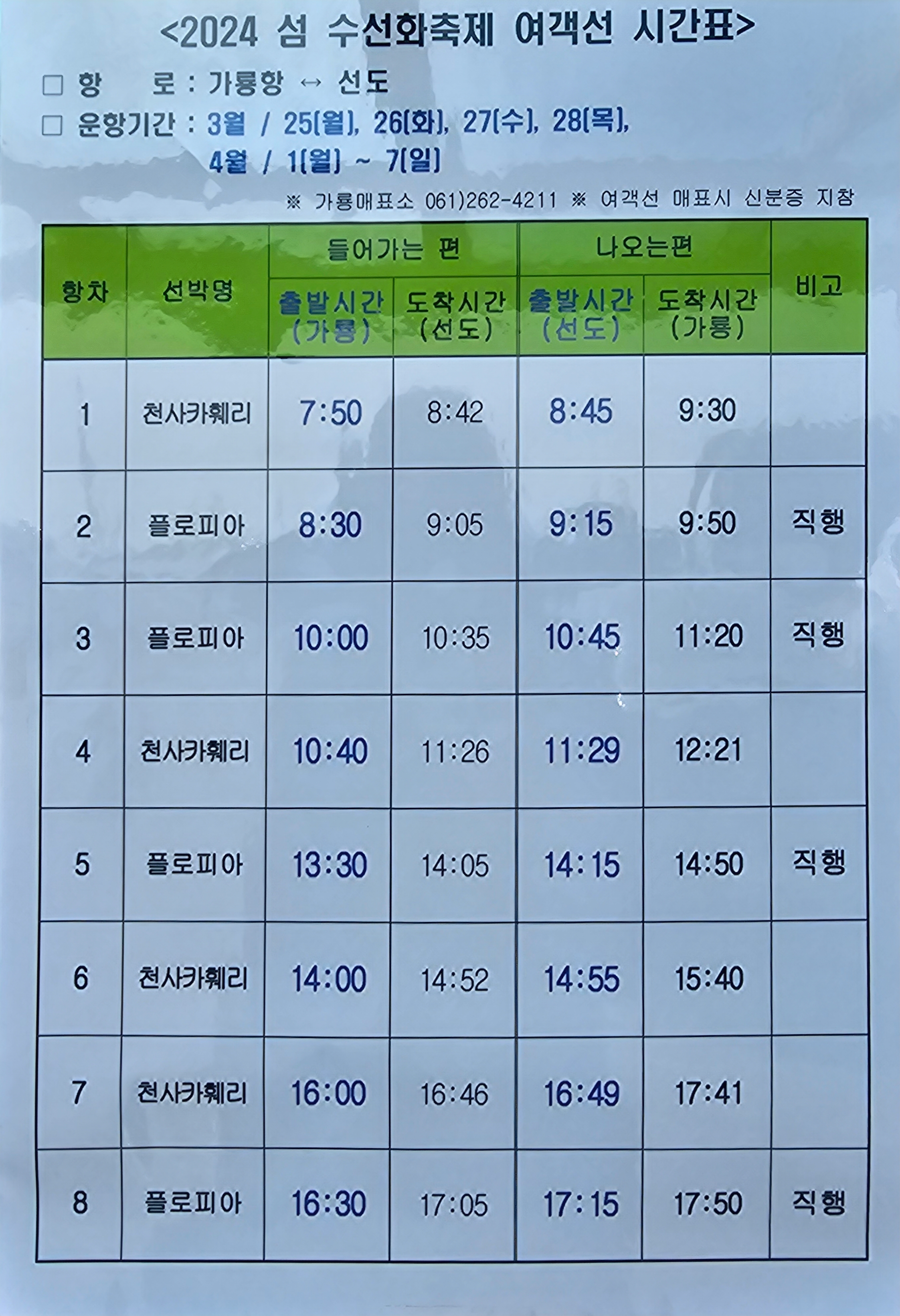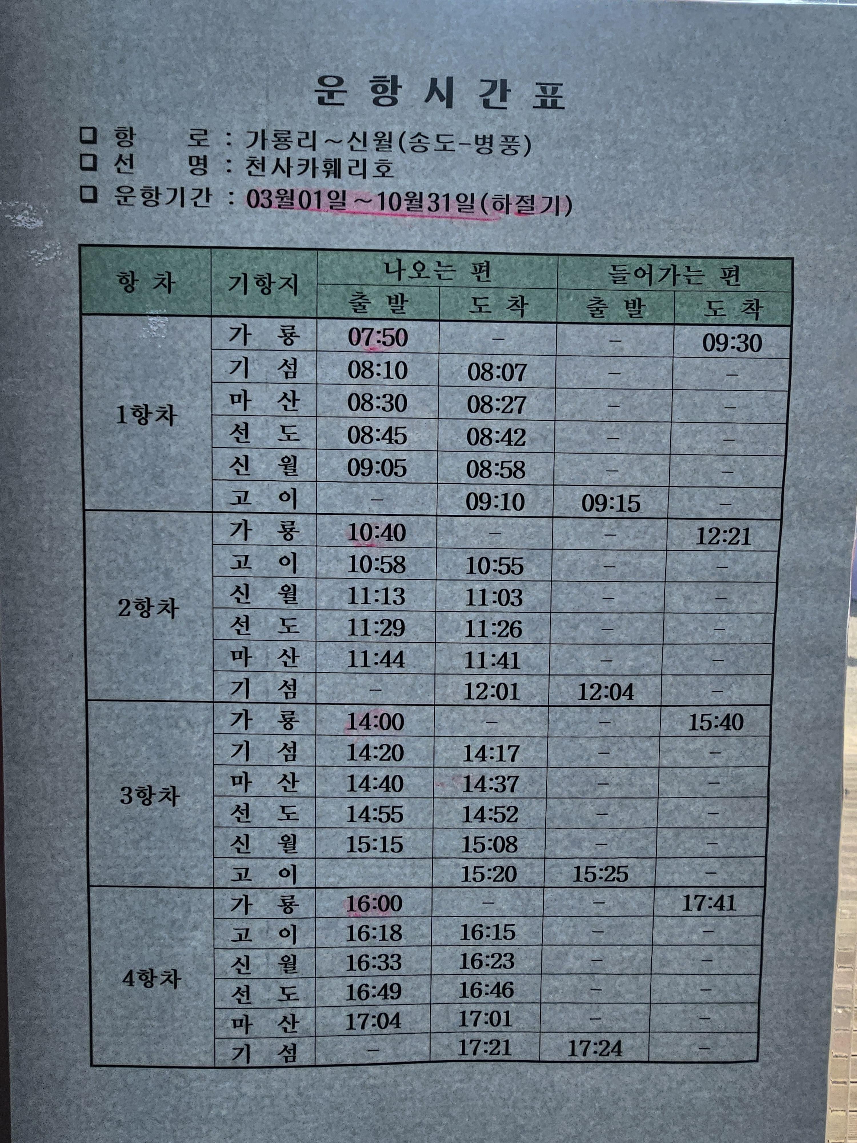 배편을 꼭 확인 하셔야해요