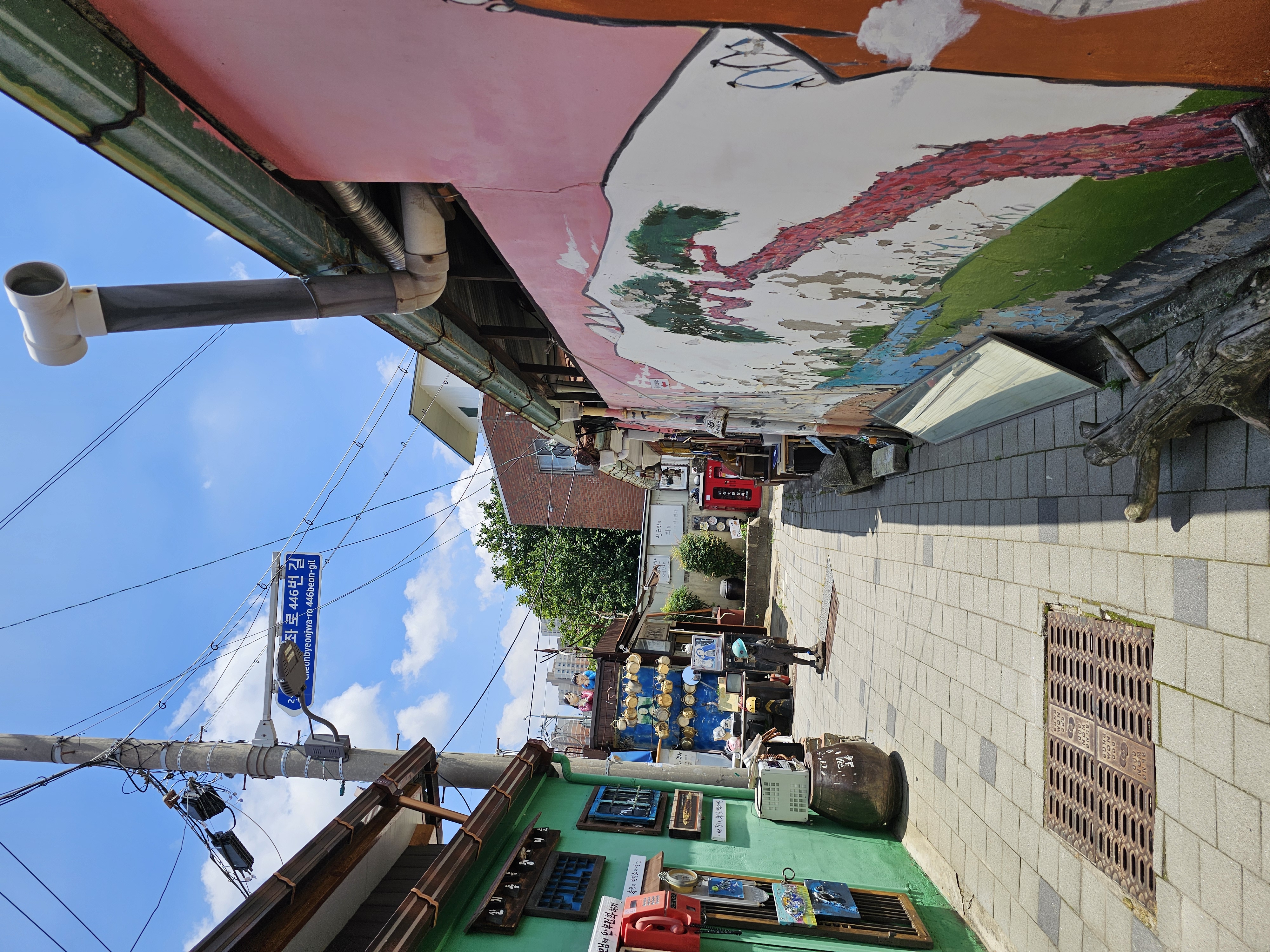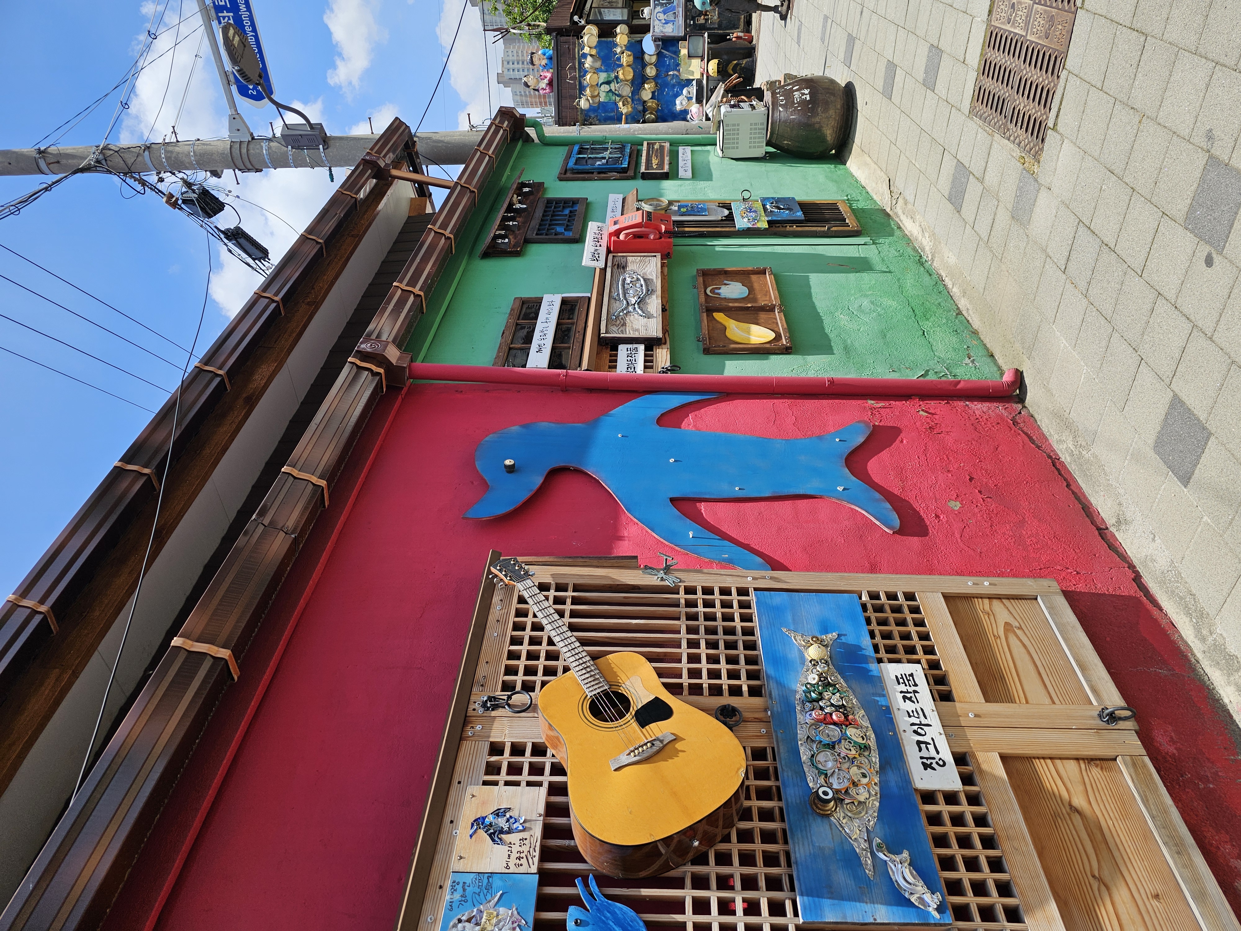 식사를 마치고는 바로 옆 '펭귄마을'로 산책을 나섰어요. 이곳은 알록달록한 벽화와 정크아트 조형물이 가득한 골목으로, 예쁜 포토존과 감성적인 소품들이 많아 걷기만 해도 힐링이 되는 공간이에요. 이날 날씨도 맑아서 사진도 참 예쁘게 나왔고요.