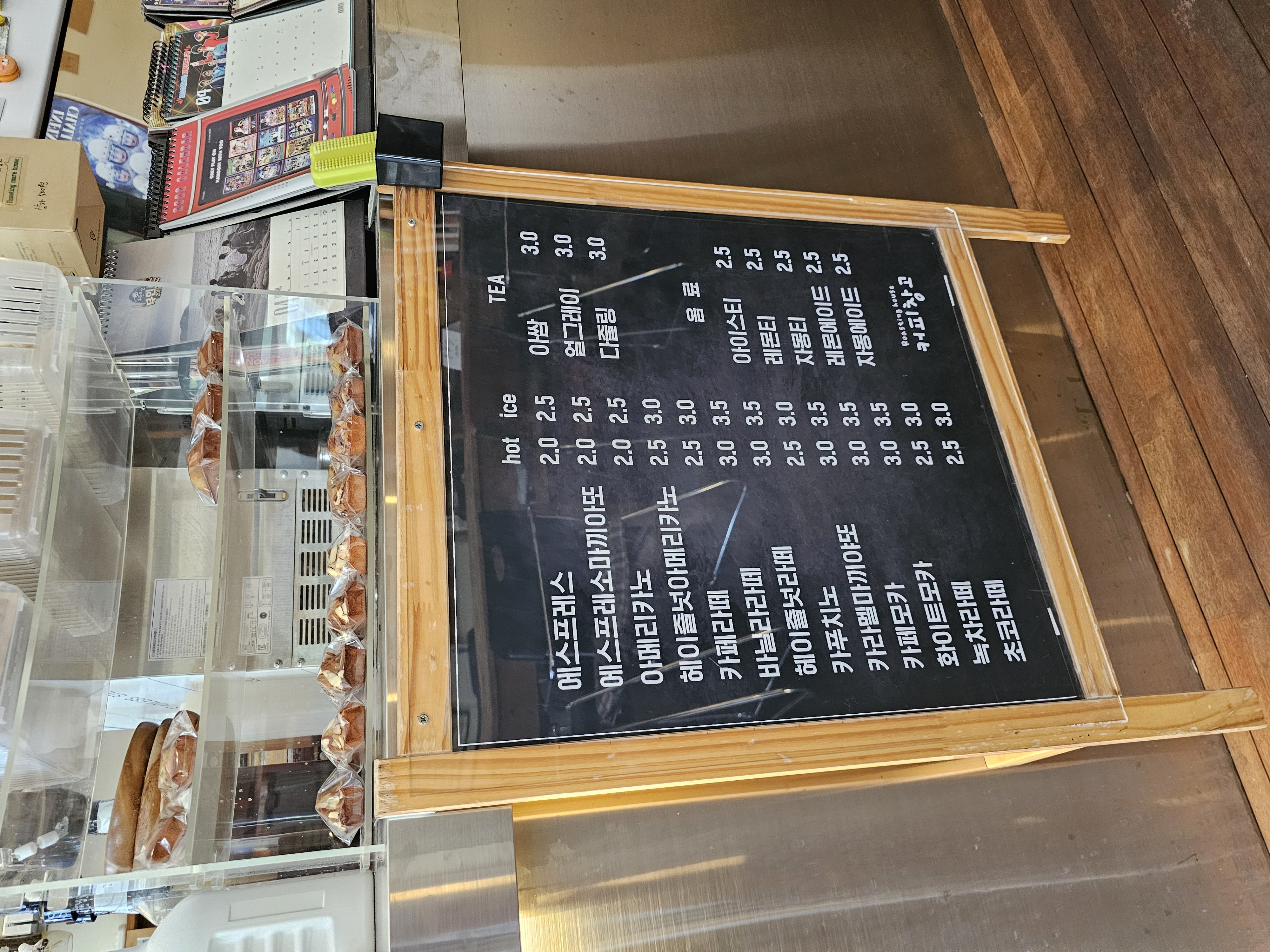 메뉴판을 보니 가격도 너무 착하더라고요. 아메리카노가 2,000원부터 시작되고, 라떼도 3,000원대. 진열장엔 직접 만든 듯한 마들렌이 몇 개 놓여 있었는데, 이런 베이커리는 커피와 함께 즐기기 좋겠죠. 커피는 스페셜티 원두를 사용한다고 하는데, 향이 깔끔하고 밸런스가 좋아서 만족스러웠습니다.