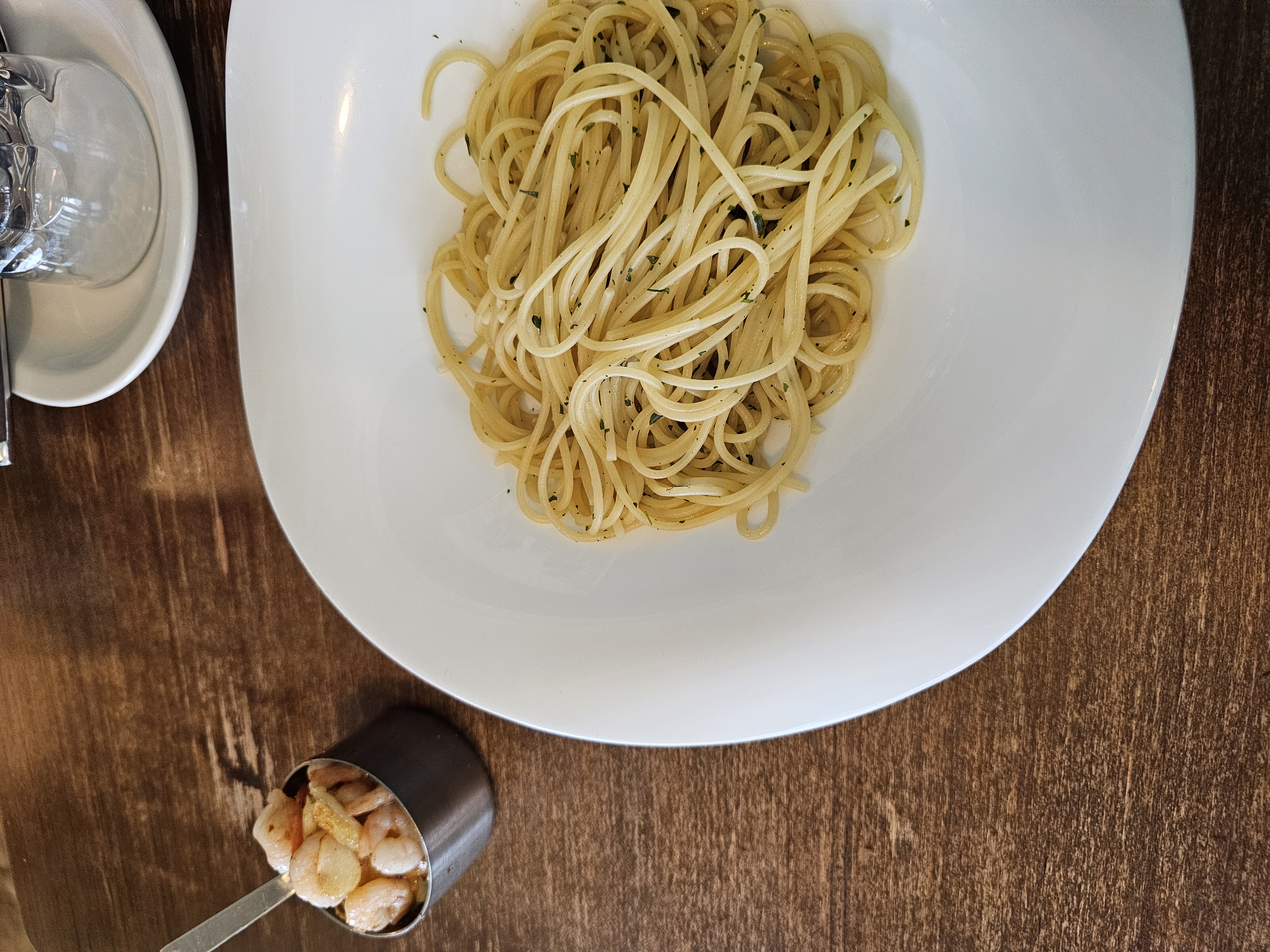 함께 주문한 감바스와 오일 파스타도 인상적이었는데요. 감바스는 새우와 마늘향이 풍부하면서도 느끼하지 않고, 오일 파스타는 마늘 풍미 가득한 심플한 스타일로 감바스와 완벽한 궁합을 자랑했습니다. 간이 자극적이지 않아서 재료 본연의 맛이 살아 있었고, 이 집은 전체적으로 조리 밸런스가 뛰어났습니다.