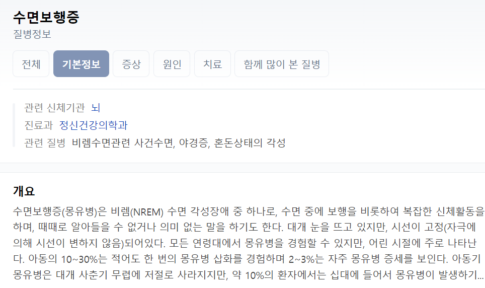 그럼 실제 몽유병의 증세가