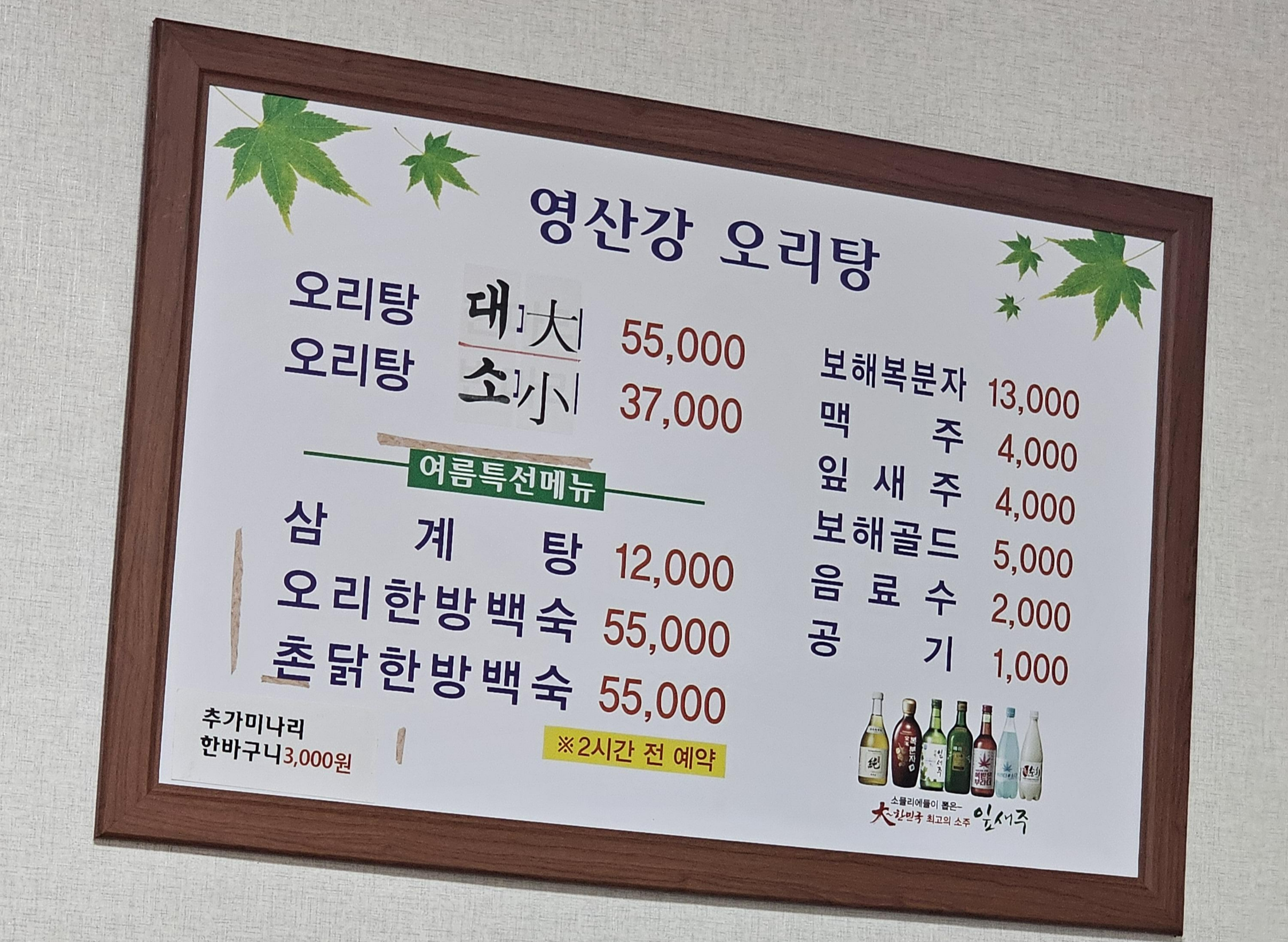 2명이 가서 오리탕소짜리 먹었습니다.