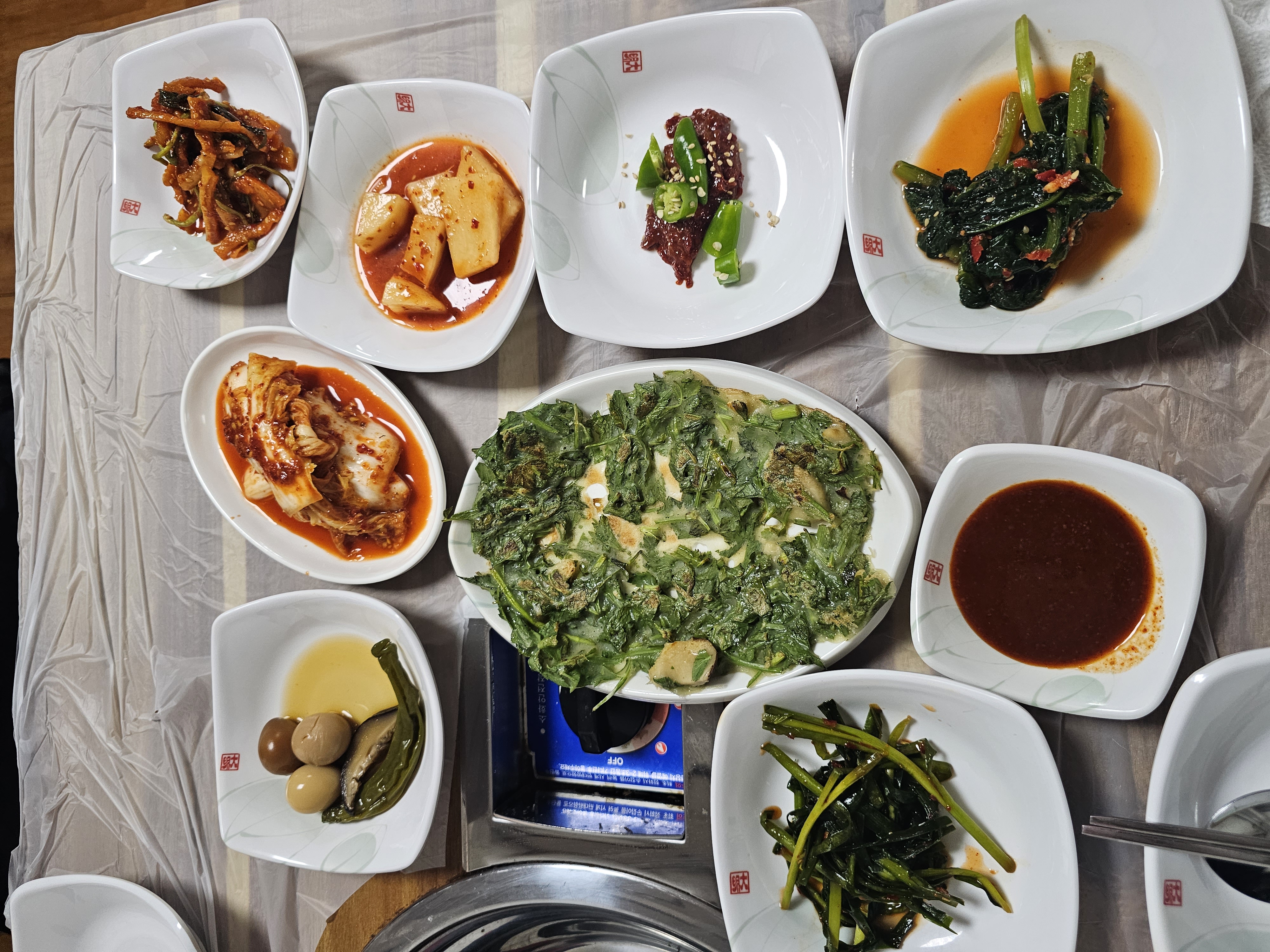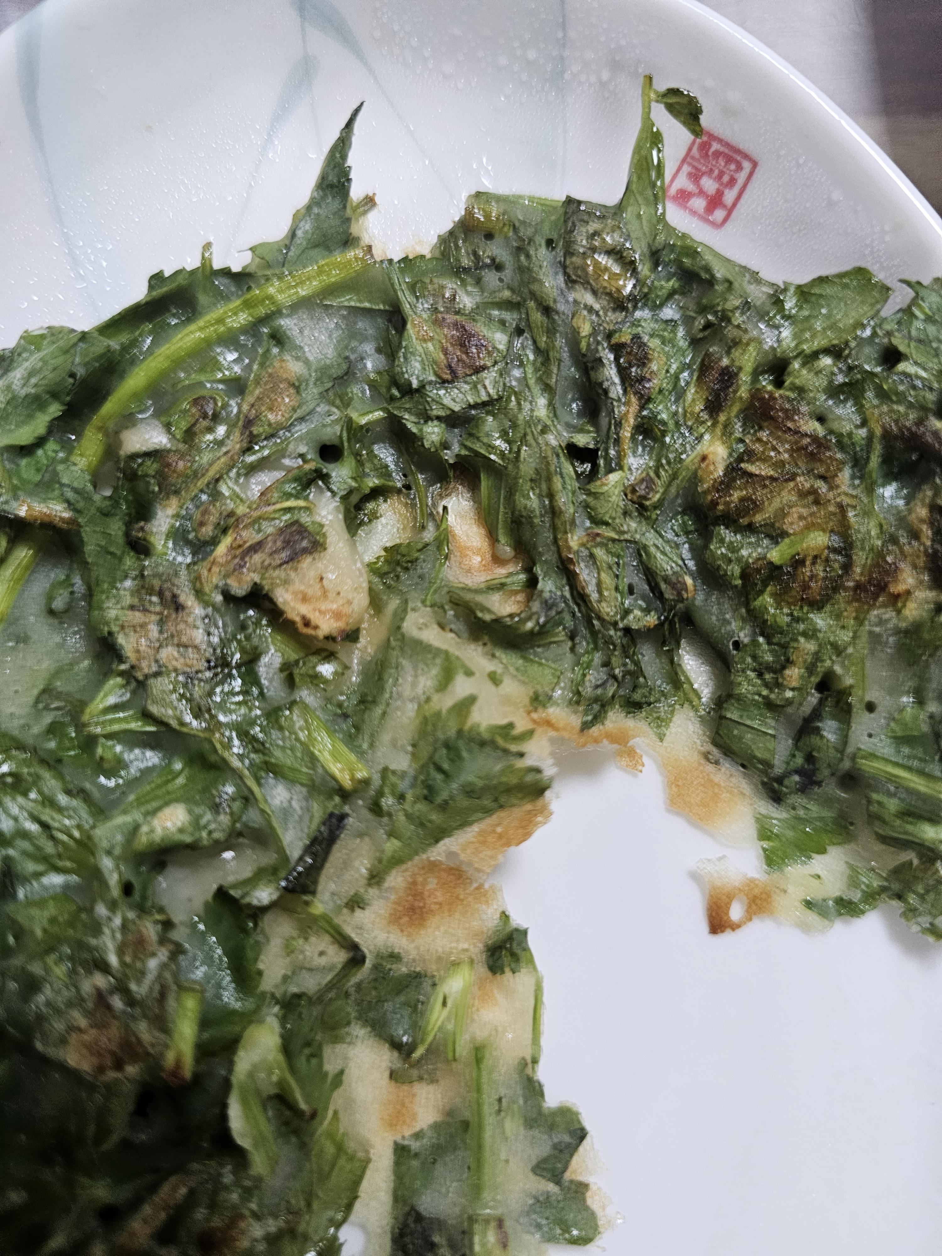 미나리전에 쑥갓과 깻잎이 들어가서 완전 향긋 했습니다.