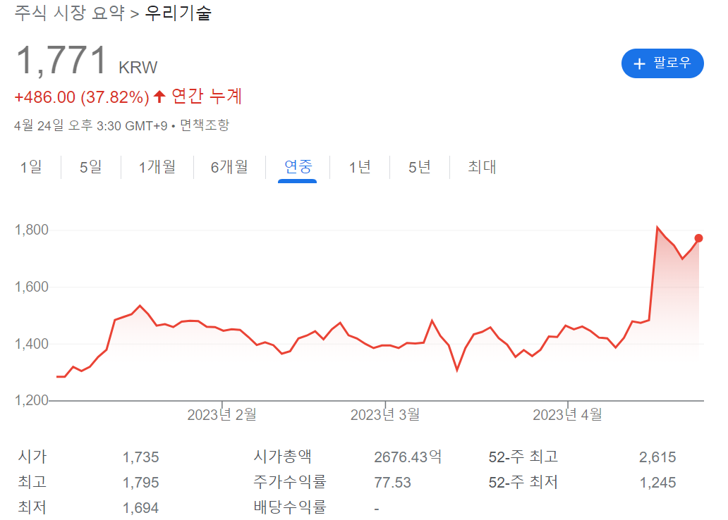 우리기술은 낮은 가격임에도 불구하고, 2000년에 코스닥으로 사장하여 작년에 흑자 전환을 하였습니다.