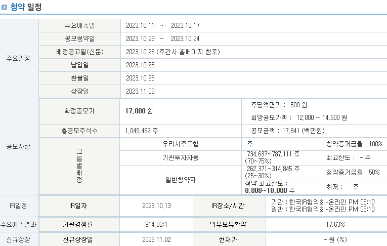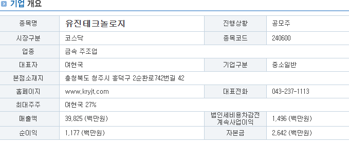유진테크놀로지의 공모가는 14500원이였던것보다 높은 17000원이다