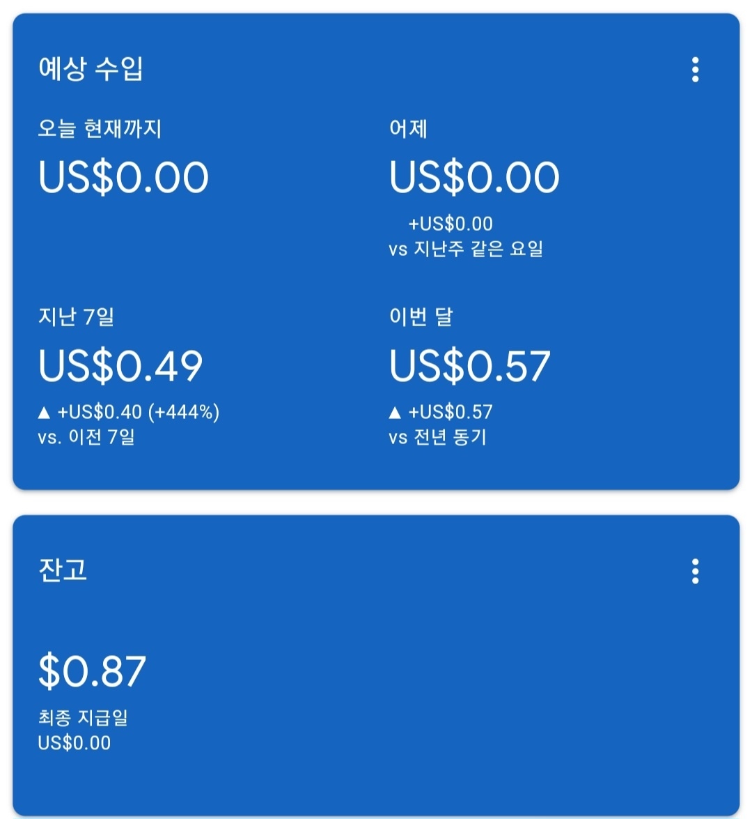 앞으로는 글을 꾸준히 더 열심히 써서 100달러 이상을 만들어 보려고 합니다 기대해 주세요 !
