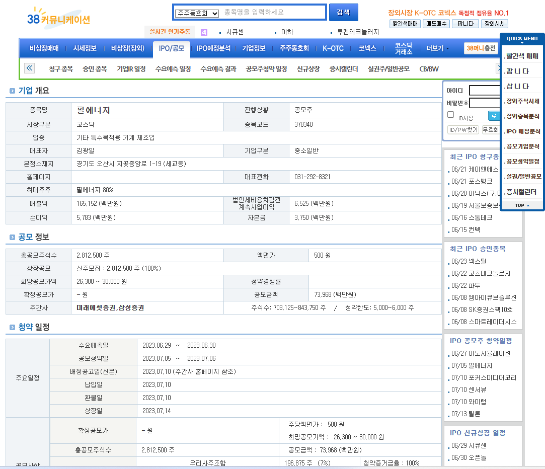 그리고 주관사의 계좌가 개설 되어 있어야 합니다 ~