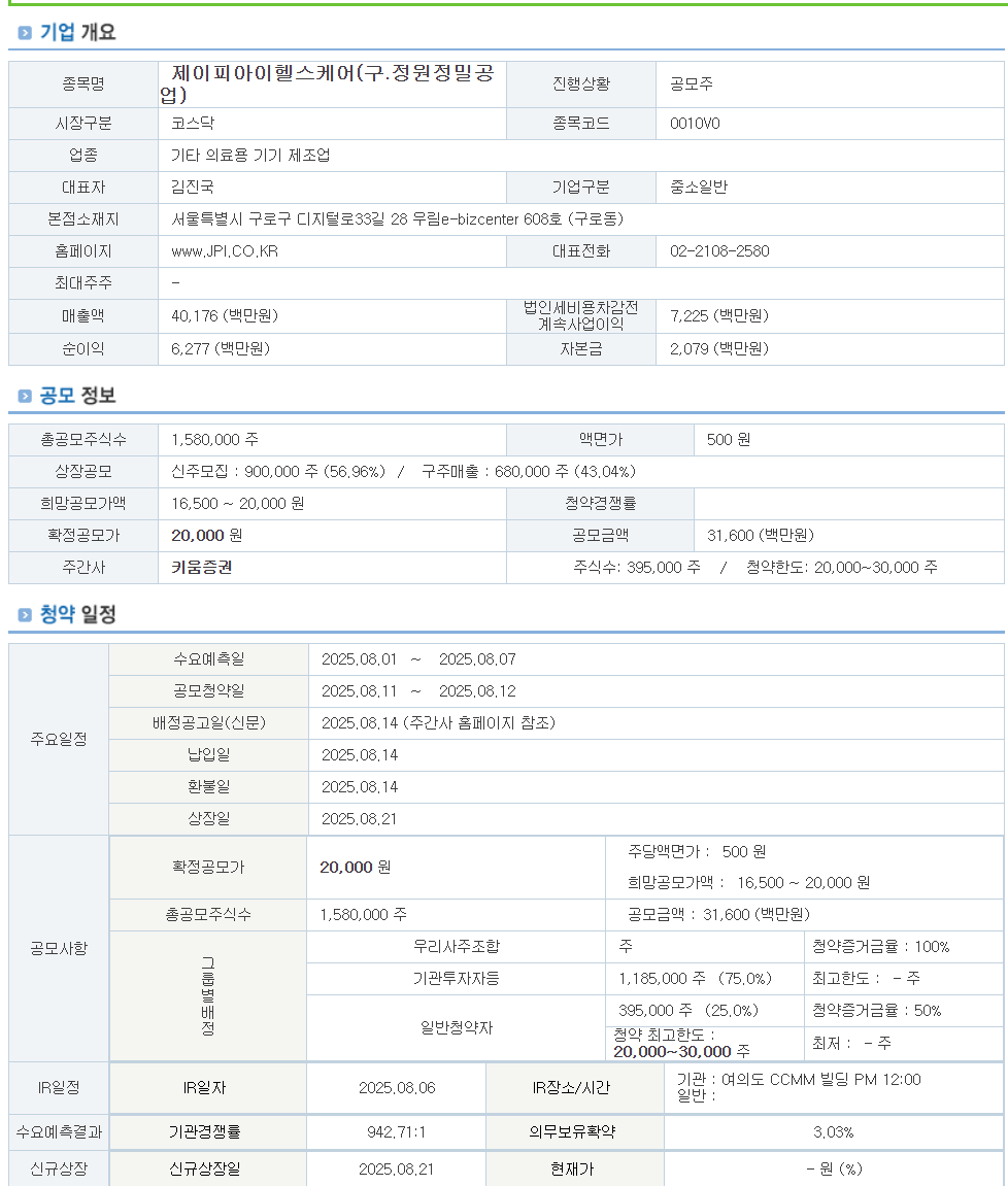 #제이피아이헬스케어 #공모주청약 #코스닥상장 #공모가20000원 #의료기기주 #키움증권 #IPO일정