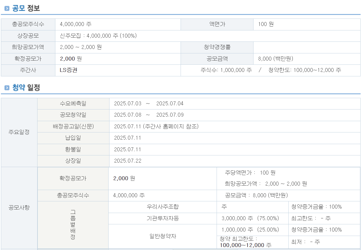 • 상장 예정일: 2025년 7월 22일(화)